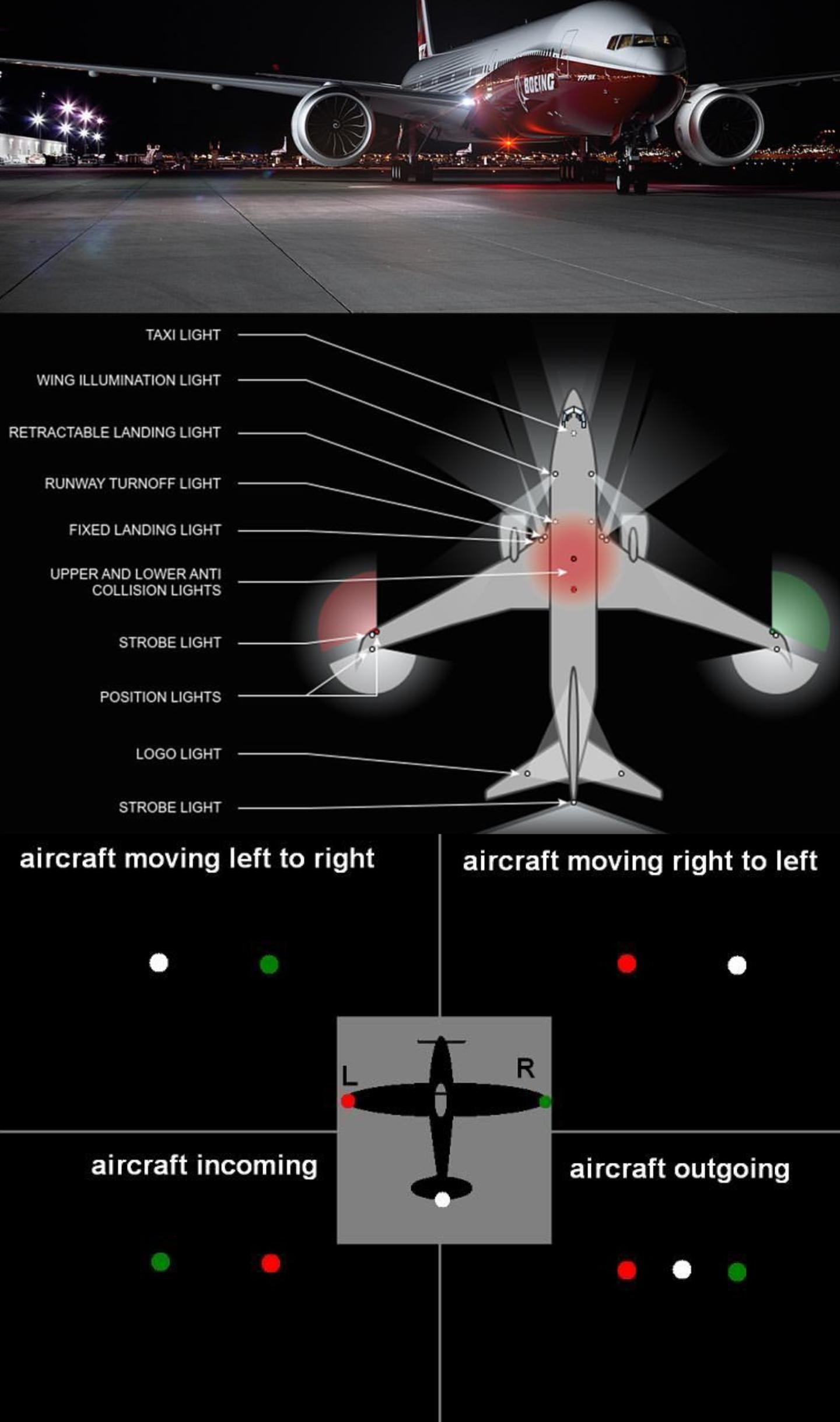 Infographic : Airplane lights and how to identify a planes flight direction from the lights