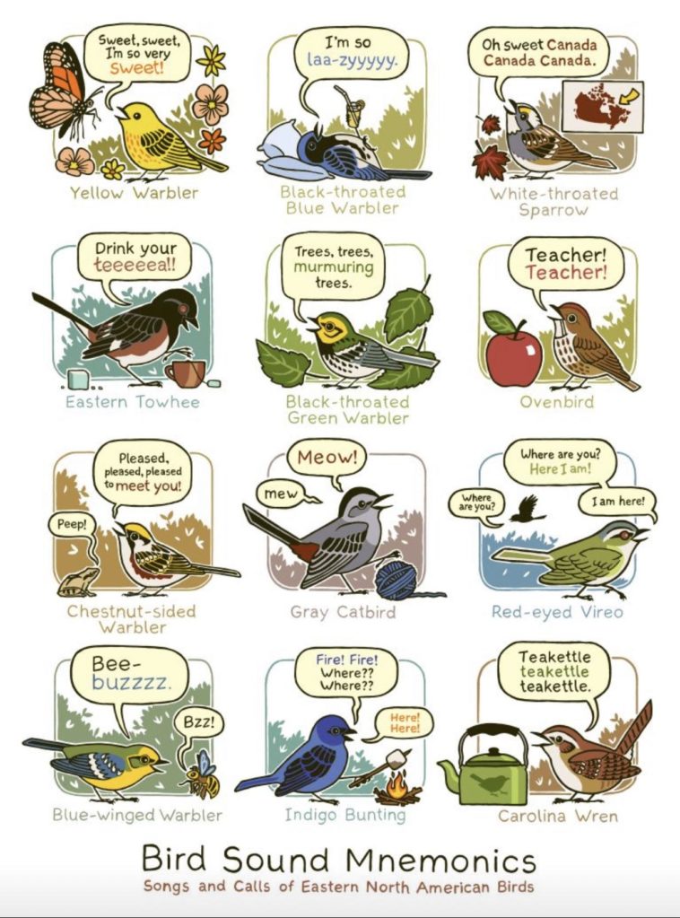 Infographic : Bird Sound Mnemonics by Bird and Moon Comics