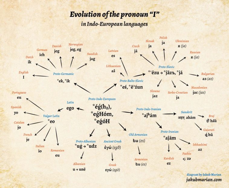 Infographic : Evolution of the pronoun “I” in Indo-European