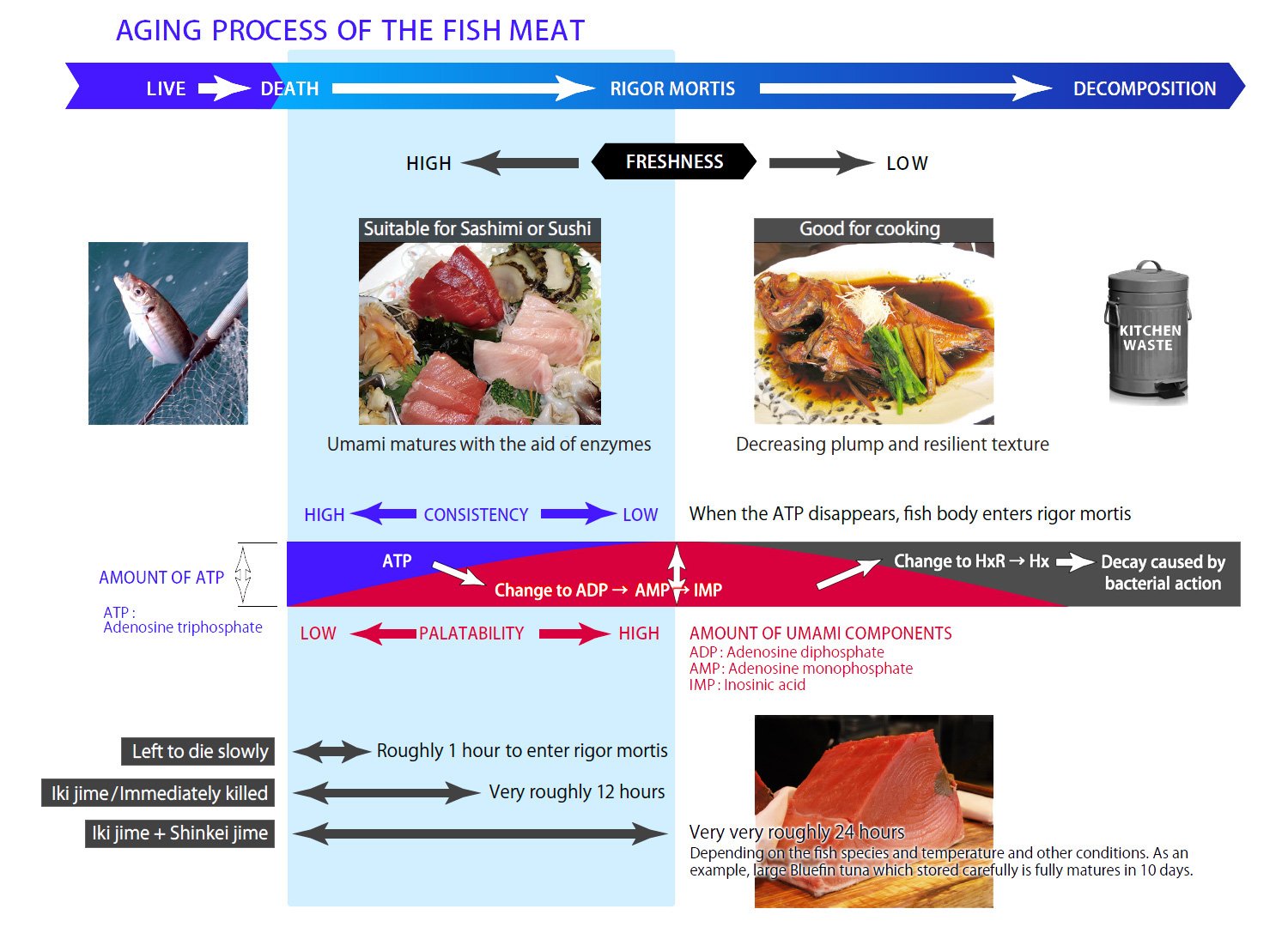 Infographic : Fish Meat after Death – chart for quality of the meat after death. From www.q.turi.ne.jp