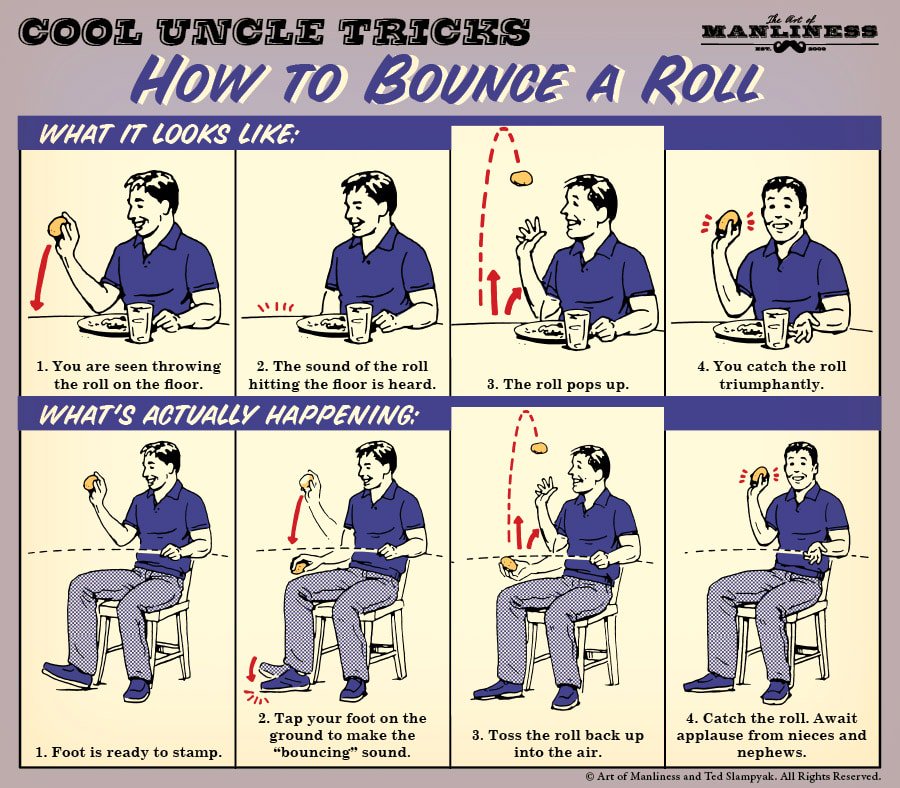 Infographic : Guide on how to pretend to bounce a roll.