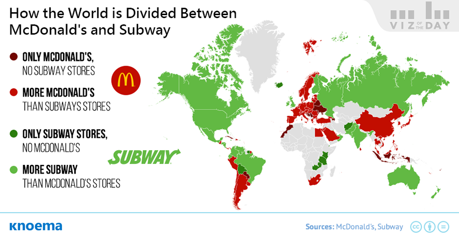 Infographic : How the World is Divided Between McDonald’s and Subway