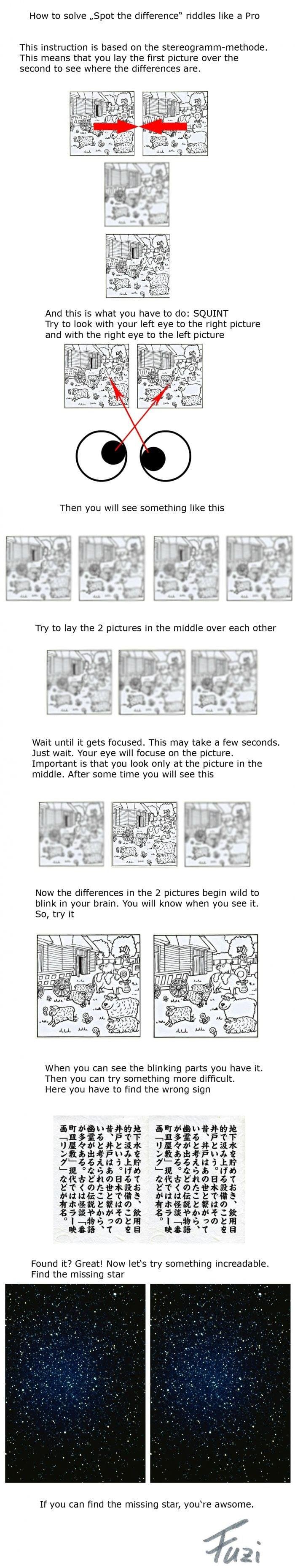 Infographic : How to solve find the difference puzzles with stereoscopy (high quality repost)