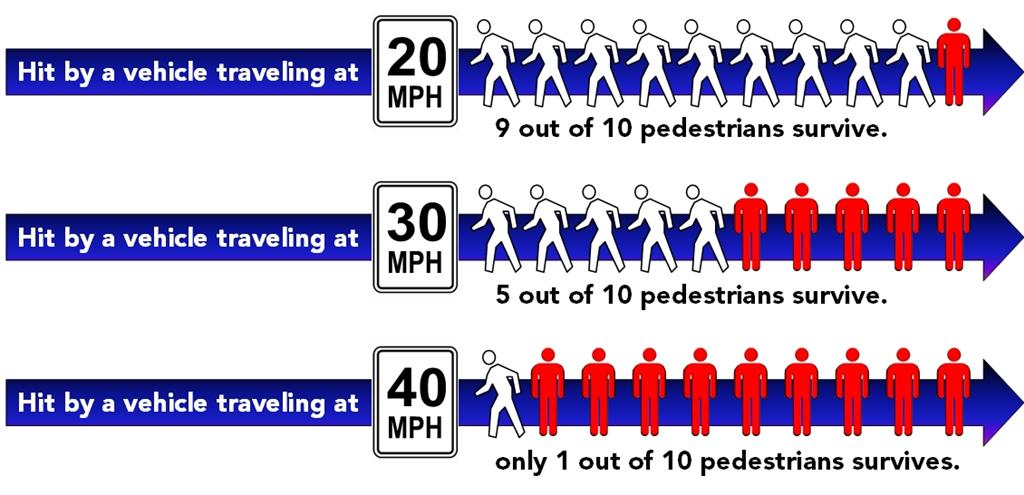 Infographic : If a pedestrian is hit by a vehicle traveling at… mph, what is the likelihood of surviving?
