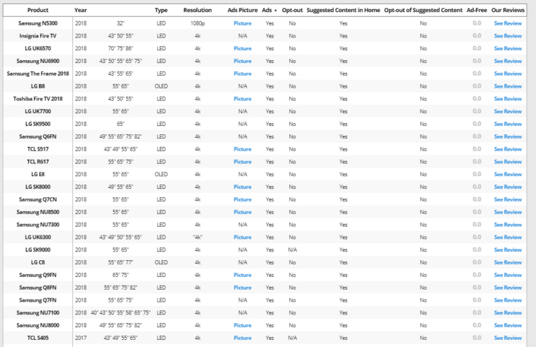 Infographic : List of TVs that put ads on their UI (RTings.com)