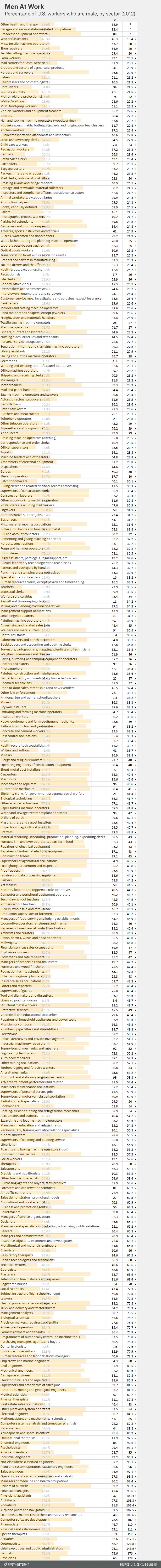 Infographic : Percentage of Men in 320 Occupations Sorted by Average Income