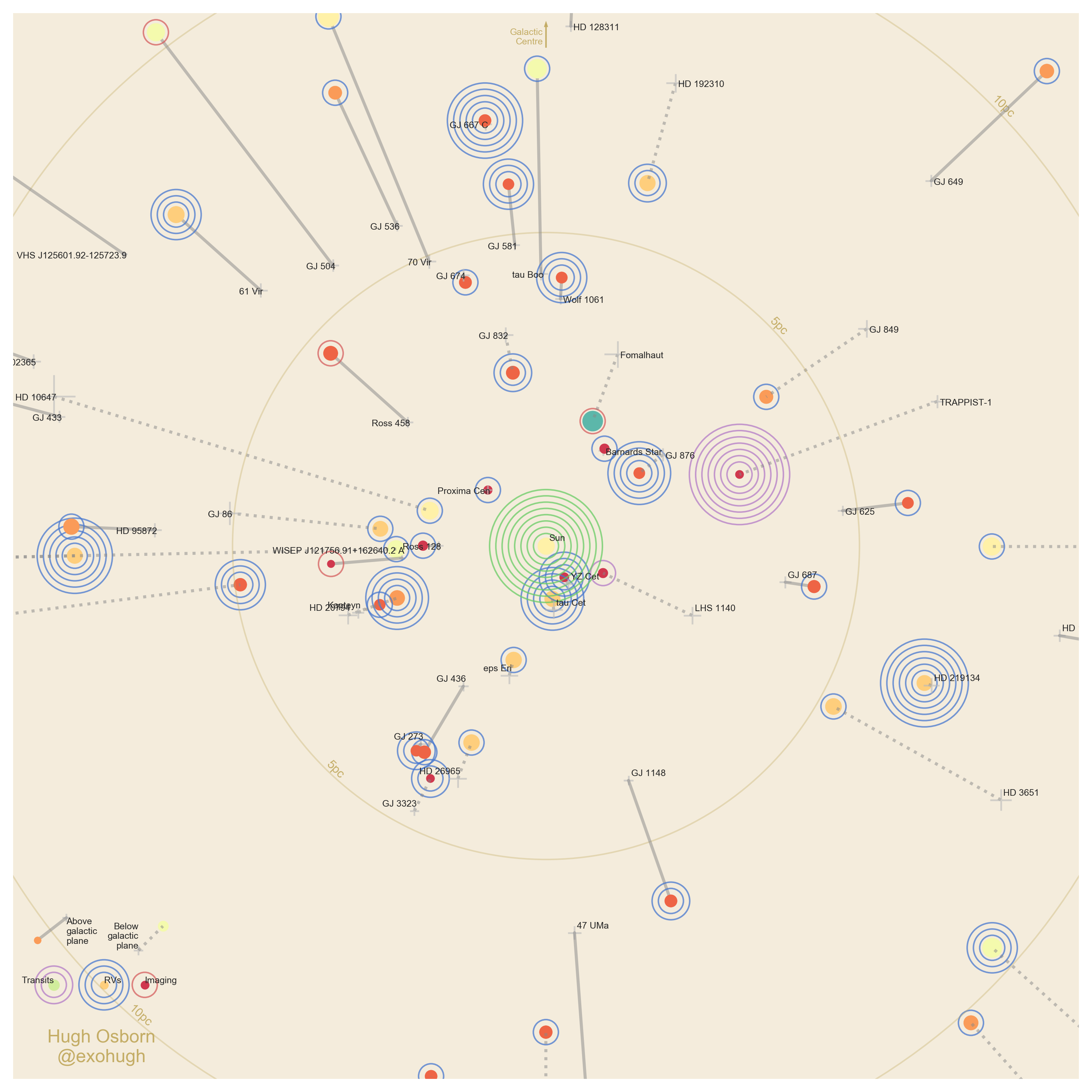 Stylised map of all known nearby exoplanets