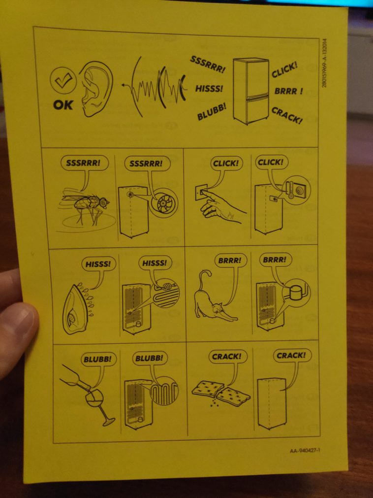 Infographic : This paper came with my refrigerator and tells that “there are some sounds during normal running”