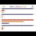 data visualization : USA, China, India: GDP, GDP per capita, population, exports (1970-2017)